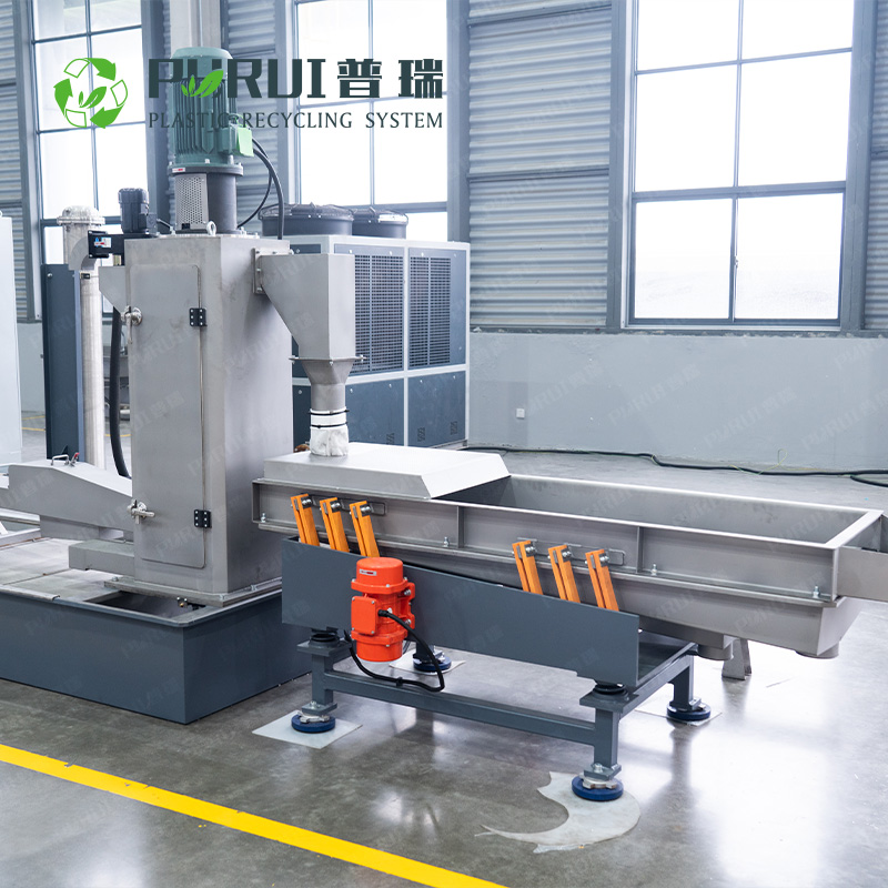 拉條切粒系統(tǒng)包括了冷卻水槽,強風干燥和切粒機,冷卻水槽用來冷卻由擠出機拉出來的塑料條。振動干燥系統(tǒng)