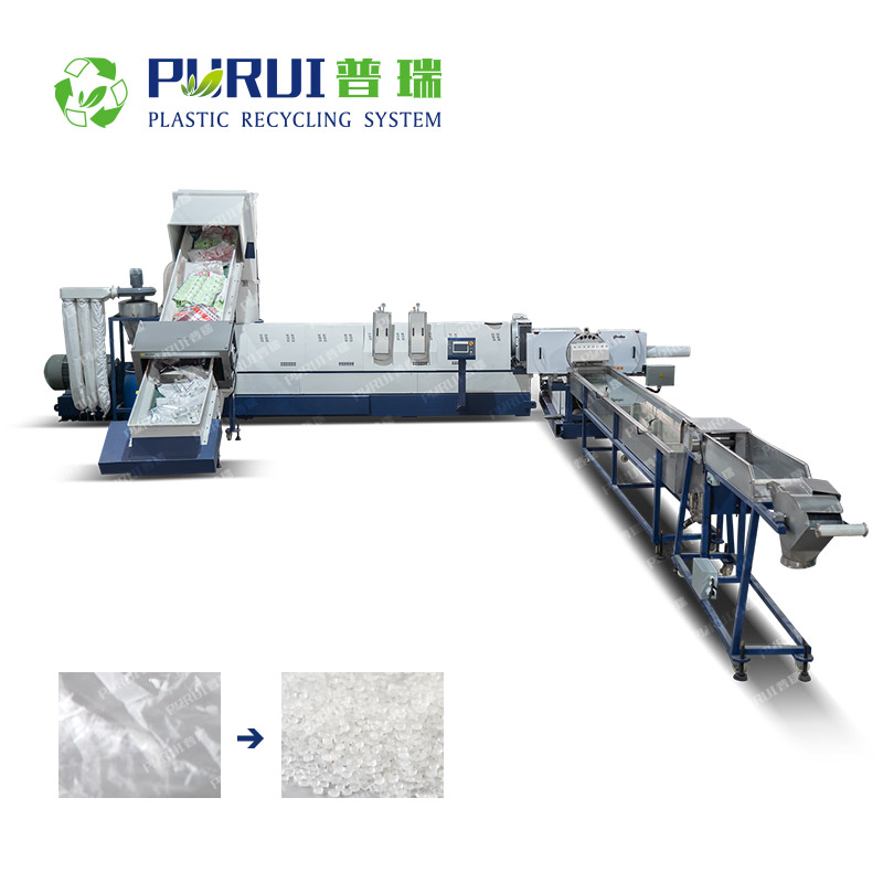 復合膜 / PET膜 / CPP膜 / 無紡布塑料造粒機屬于全自動造粒機,即從投料、破碎、輸送、造粒一次性完成,擠出機可根據材料的特點選擇排氣孔或無排氣孔,切粒方式采用拉條切粒,單板雙工位換網裝置,免停機,過濾面積大。塑料造粒機適用于復合膜、PET膜、CPP膜、無紡布等。