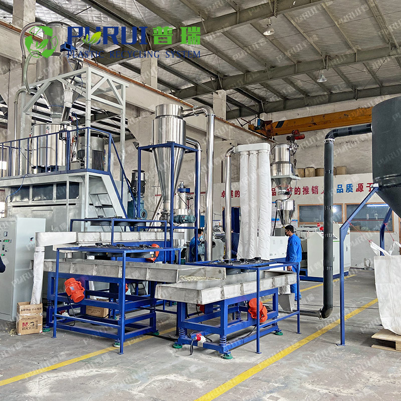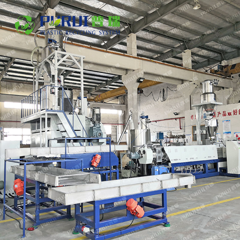 普瑞機(jī)械研發(fā)制造的PVC造粒機(jī)適用于PVC電纜、PVC管材、PVC薄膜、PVC雨棚布等塑料進(jìn)行回收造粒再利用,使其廢塑料可再生循環(huán)。PVC造粒設(shè)備一般采用錐形雙螺桿擠出機(jī)或者單螺桿塑料造粒機(jī)進(jìn)行擠出造粒,采用風(fēng)冷磨面切粒系統(tǒng),其后鏈接風(fēng)送、振動篩。